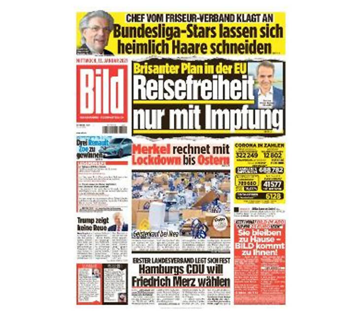 «Όσοι έχουν εμβολιαστεί, θα πρέπει να μπορούν να ταξιδεύουν ελεύθερα. Αυτό θα είναι και ένα θετικό κίνητρο για να διασφαλιστεί ότι οι πολίτες θα ενθαρρυνθούν να εμβολιαστούν, καθώς αυτός είναι ο μόνος τρόπος για να εξασφαλιστεί η επιστροφή στην κανονικότητα», σημειώνεται στο κείμενο της εφημερίδας, με την επισήμανση ότι η σχετική συζήτηση έχει ξεκινήσει στη Γερμανία ήδη από το Δεκέμβριο σχετικά με το αν πράγματι όσοι έχουν εμβολιαστεί θα πρέπει να ζουν μια «κανονική» ζωή κι έχει φτάσει ως το Συμβούλιο Ηθικής, το οποίο ενεργεί συμβουλευτικά προς την ομοσπονδιακή κυβέρνηση.