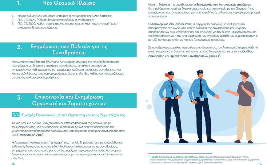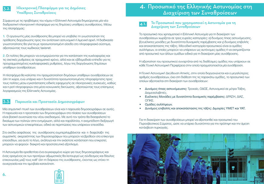 Όπως είπε στη διάρκεια διαδικτυακής συνέντευξης Τύπου, «η αστυνομία δηλώνει, για πρώτη φορά, δημόσια το πώς θα εφαρμόσει τον νόμο περί συναθροίσεων. Για πρώτη φορά τολμά να αναφερθεί ακόμη και στην επιχειρησιακή της φιλοσοφία. Εξηγεί τι κάνει, τι προσπαθεί, πώς δρα. Αυτοδεσμεύεται και απομυθοποιεί. Κάνει το πρώτο βήμα για συνεννόηση! Γιατί η διαχείριση της συνάθροισης, η περιφρούρηση της συνάθροισης είναι ευθύνη πολλών, όχι μόνο της αστυνομίας».