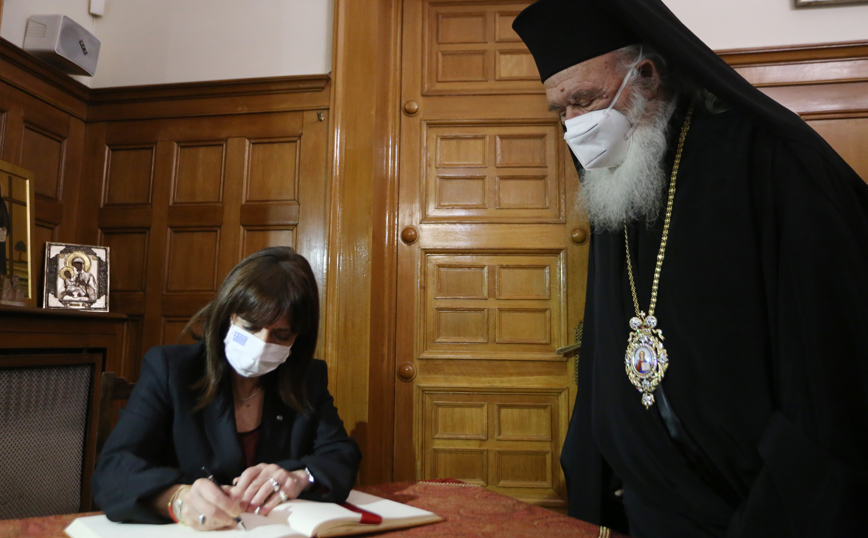 Με τον Αρχιεπίσκοπο Ιερώνυμο συναντήθηκε σήμερα η Πρόεδρος της Δημοκρατίας Κατερίνα Σακελλαροπούλου, η οποία έκανε λόγο για «μια γόνιμη ανταλλαγή απόψεων, σε κλίμα αμοιβαίας κατανόησης».