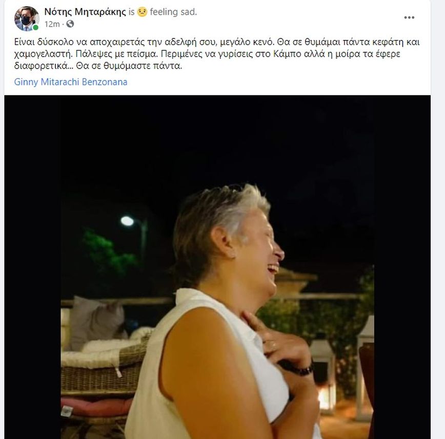 Ο κ. Μηταράκης γνωστοποίησε τη δυσάρεστη είδηση με μια ανάρτησή του στον προσωπικό του λογαριασμό στο Facebook.