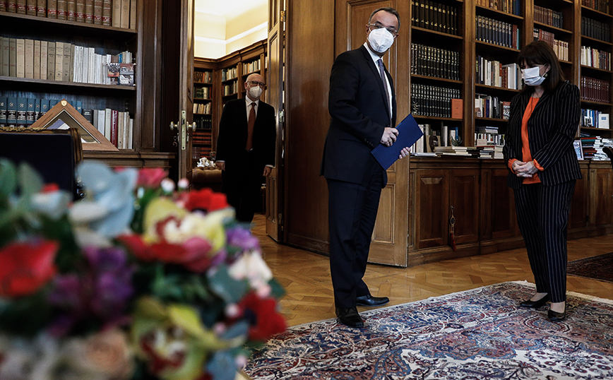 «Σήμερα είχα την ευκαιρία να παρουσιάσω στην Πρόεδρο της Δημοκρατίας κυρία Κατερίνα Σακελλαροπούλου την τρέχουσα κατάσταση της ελληνικής οικονομίας και τις προοπτικές της. Με βάση τα τελευταία διαθέσιμα στοιχεία, η ελληνική οικονομία αντέχει, παρά τους ισχυρούς κλυδωνισμούς» δήλωσε ο υπουργός Οικονομικών Χρήστος Σταϊκούρας, μετά τη συνάντησή του με την Πρόεδρο της Δημοκρατίας, και προσέθεσε: