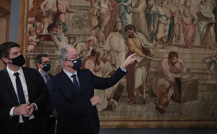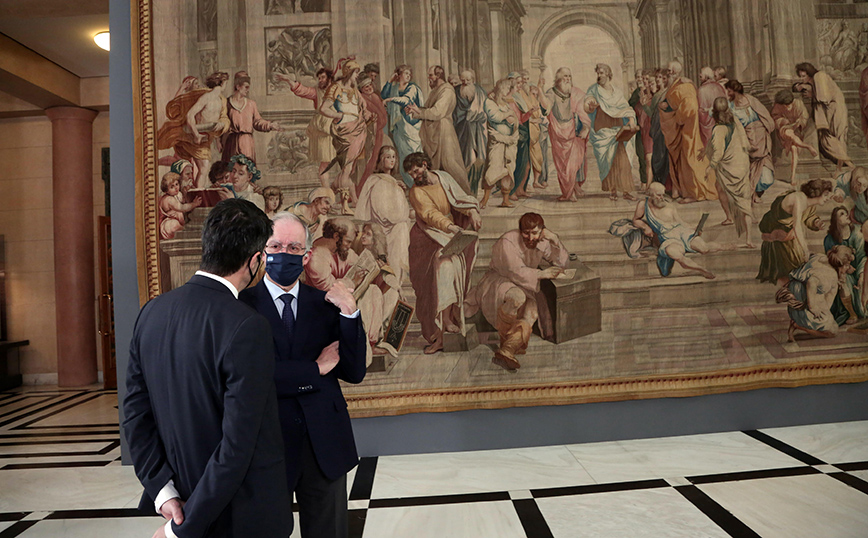 Ως «το πιο σπουδαίο καλλιτεχνικά και διπλωματικά έργο τέχνης που έχει προσφερθεί ποτέ στο Κοινοβούλιο» χαρακτήρισε ο πρόεδρος της Βουλής Κώστας Τασούλας τον τοιχοτάπητα του 18ου αιώνα με θέμα τη «Σχολή των Αθηνών», που από σήμερα Δευτέρα (22/3) θα κοσμεί το μέγαρο, μετά από προσφορά του Προέδρου της Γαλλικής Εθνοσυνέλευσης, ως μια χειρονομία τιμής προς τη χώρα μας για τα 200 χρόνια από την Ελληνική Επανάσταση.