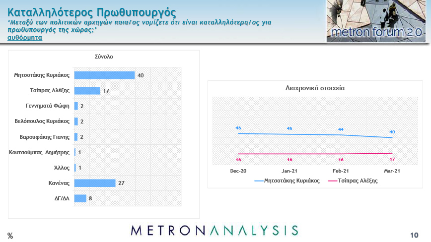 «Μεταξύ των πολιτικών αρχηγών ποια/ποιος νομίζεται ότι είναι καταλληλότερη/ος για πρωθυπουργός της χώρας;» ρωτήθηκαν οι πολίτες.