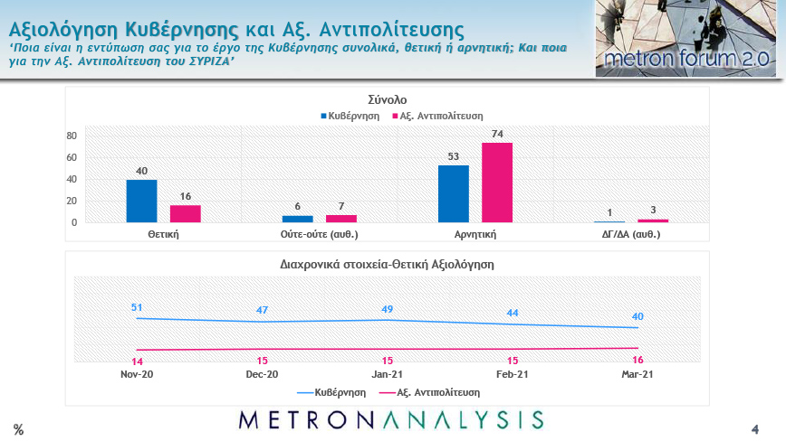«Ποια είναι η εντύπωση σας για το έργο της Κυβέρνησης συνολικά, θετική η αρνητική; Και ποια για την αξιωματική αντιπολίτευση του ΣΥΡΙΖΑ;»