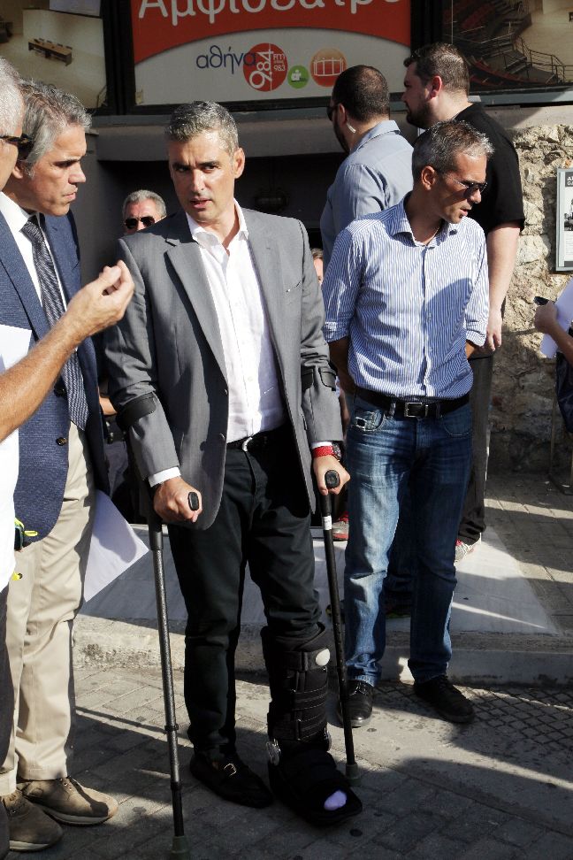 Με πατερίτσες εμφανίστηκε στη σημερινή ορκωμοσία του δημοτικού συμβουλίου Αθηνών ο Άρης Σπηλιωτόπουλος.