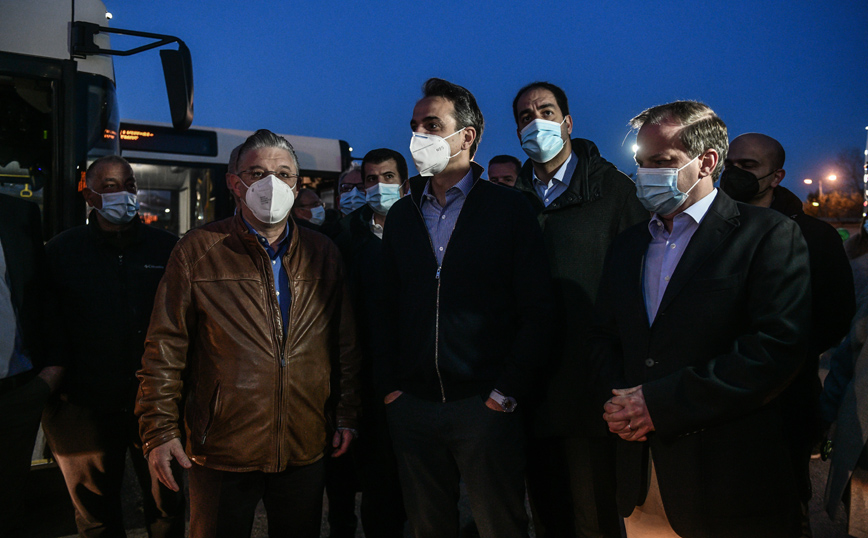 Ο Κυριάκος Μητσοτάκης συνομίλησε με τους οδηγούς και τουτ τεχνικούς των λεωφορείων, ενώ μίλησε για την ανάγκη να μπουν στο στόλο περισσότερα λεωφορεία και μάλιστα αυτά να είναι φιλικά προς το περιβάλλον.