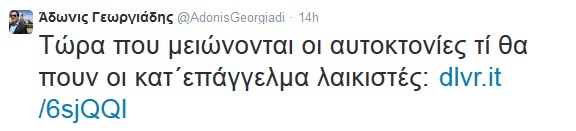 «Τώρα που μειώνονται οι αυτοκτονίες τι θα πουν οι κατ’ επάγγελμα λαϊκιστές» έγραψε στο twitter ο κ. Γεωργιάδης.