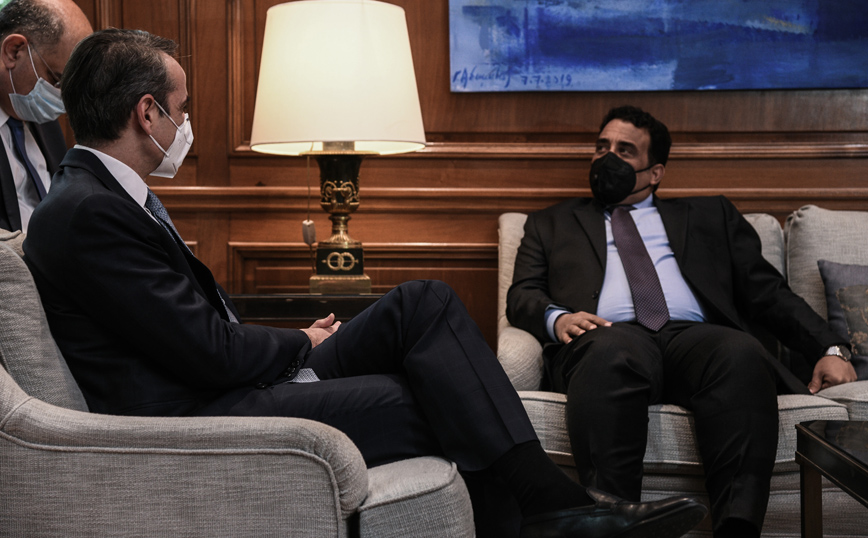Ο Πρωθυπουργός Κυριάκος Μητσοτάκης και ο Πρόεδρος του Προεδρικού Συμβουλίου της Λιβύης, Mohamed al-Menfi, που είχνα σήμερα συνάντηση στο Μέγαρο Μαξίμου, συμφώνησαν στην άμεση επανεκκίνηση των συνομιλιών Ελλάδας και Λιβύης για την Οριοθέτηση των Θαλασσίων Ζωνών υπό την ευθύνη των Υπουργών Εξωτερικών των δύο χωρών.