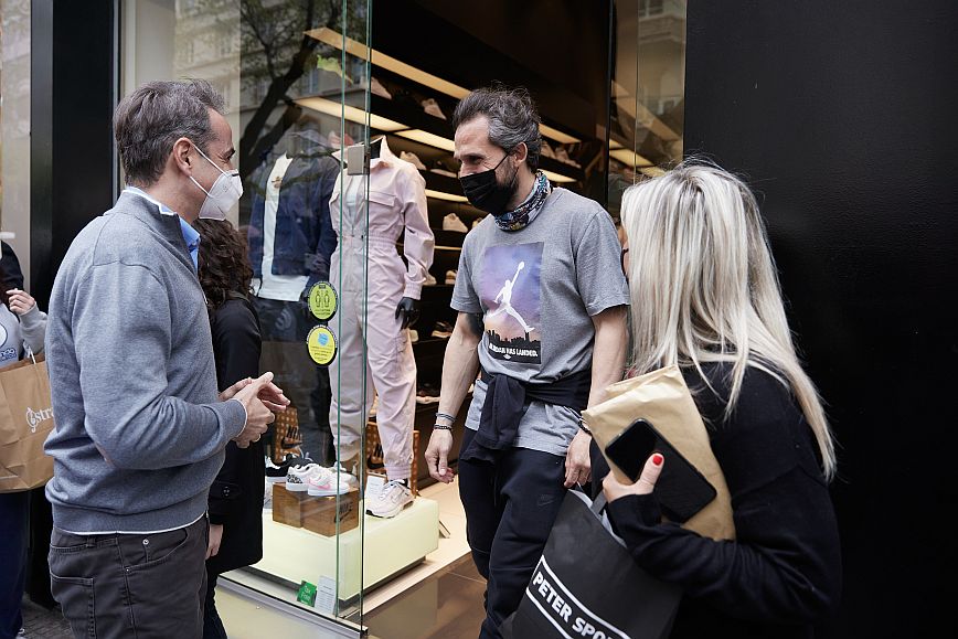 Ο πρωθυπουργός περπάτησε στους δρόμους της πόλης, προκειμένου να δει πώς κινείται η αγορά, καθώς από σήμερα στη Θεσσαλονίκη λειτουργεί με και click inside.