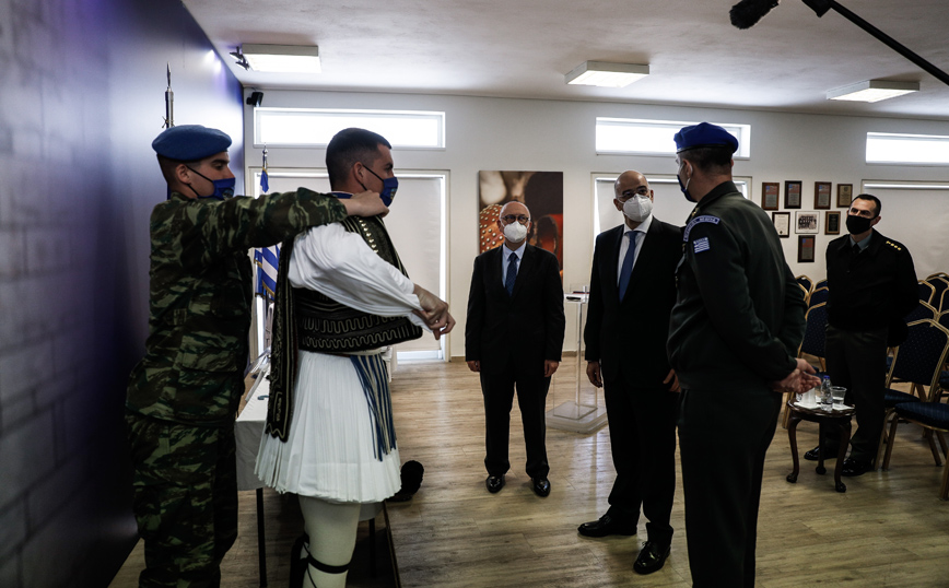 Μετά τη συνάντηση ο Νίκος Δένδιας επισκέφτηκε την προεδρική φρουρά.