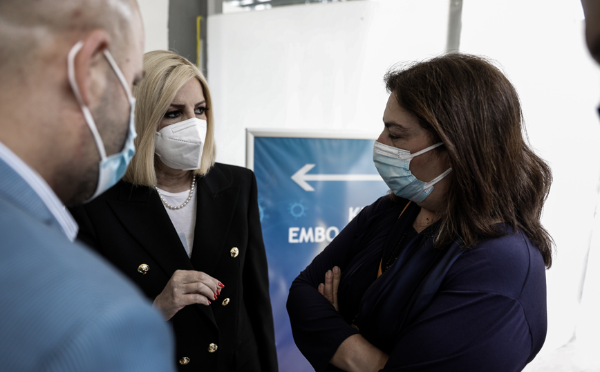 Για την πορεία των εμβολιασμών κατα της covid-19 ενημερώθηκε η πρόεδρος του Κινήματος Αλλαγής Φώφη Γεννηματά επισκεπτόμενη το εμβολιαστικό κέντρο στο Ασκληπιείο Βούλας.
