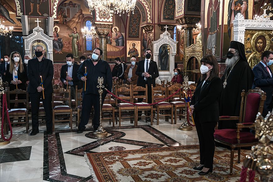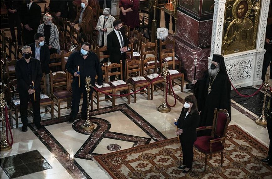 Στον Ιερό Ναό της «Αγίας Τριάδας» στον Πειραιά παρακολούθησε την Ακολουθία του Επιταφίου η Πρόεδρος της Δημοκρατίας, Κατερίνα Σακελλαροπούλου.