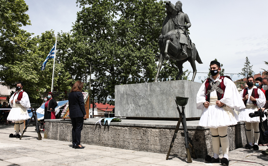 «Είναι χαρά για μένα που βρίσκομαι εδώ, στον Δήμο Μουζακίου, ανάμεσα στην ομορφιά της φύσης και τα ίχνη της ιστορίας, και μεγάλη τιμή που από σήμερα γίνομαι συμβολικά συντοπίτισσα του πιο φλογερού ήρωα της Επανάστασης του 1821, του Γεωργίου Καραϊσκάκη. Είναι ο πολεμιστής που ο Κωστής Παλαμάς αποκάλεσε “Αχιλλέα της Ρωμιοσύνης”, η ατίθαση ψυχή που την τιθασεύει στο τέλος μόνη η ιδέα της Πατρίδας, το λιγνό σώμα που καίγεται από τον πυρετό κι όμως απομένει αλύγιστο ως το τέλος», τόνισε μεταξύ άλλων στην αντιφώνησή της η Πρόεδρος της Δημοκρατίας και συνέχισε: