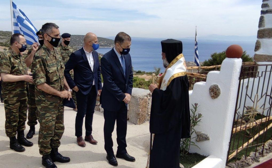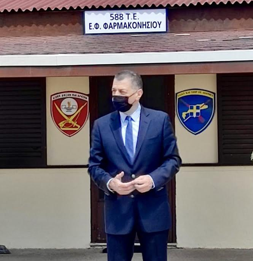 Στην τελετή εορτασμού των 100 ετών από την ανέγερση του ιερού ναού του Αγίου Γεωργίου στο Φαρμακονήσι παρέστη σήμερα ο υφυπουργός Εθνικής Άμυνας Αλκιβιάδης Στεφανής, συνοδευόμενος από τον δήμαρχο Λέρου κ. Μιχάλη Κόλια. Ακολούθως το στέλεχος της κυβέρνησης μετέβη στο Επιτηρητικό Φυλάκιο (ΕΦ) Φαρμακονησίου, όπου αντάλλαξε ευχές με το εν υπηρεσία προσωπικό και μετά επισκέφθηκε το Στρατηγείο της 80ής Ανώτερης Διοίκησης Ταγμάτων Εθνοφυλακής (ΑΔΤΕ) στην Κω.
