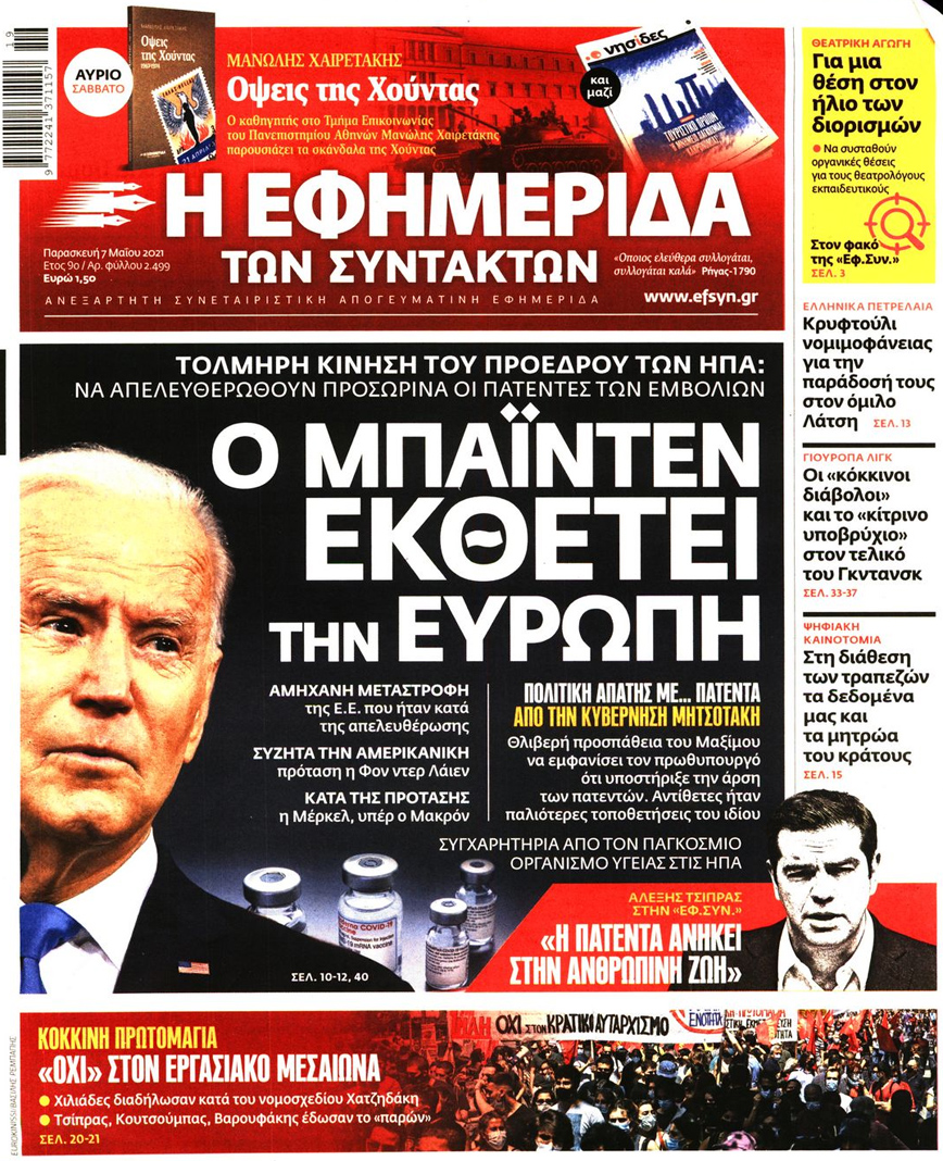 «Η πατέντα ανήκει στην ανθρώπινη ζωή» είναι ο τίτλος της δήλωσης που έκανε στην Εφημερίδα των Συντακτών ο πρόεδρος του ΣΥΡΙΖΑ Αλέξης Τσίπρας αναφορικά με την άρση της πατέντας στα εμβόλια του κορονοϊού.