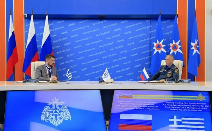 Με τον ρώσο ομόλογό του αναπληρωτή Υπουργό αρμόδιο για την Πολιτική Άμυνα, τις Έκτακτες Ανάγκες και την Εξάλειψη Συνεπειών από Φυσικές Καταστροφές (EMERCOM), Alexander Chupriyan, συναντήθηκε την Τρίτη (11/5) στη Μόσχα όπου και βρίσκεται υφυπουργός Πολιτικής Προστασίας και Διαχείρισης Κρίσεων, Νίκος Χαρδαλιάς.