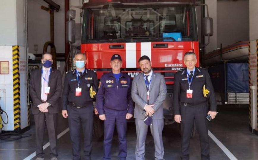 Τον υφυπουργό Πολιτικής Προστασίας, Νίκο Χαρδαλιά, συνοδεύουν κατά την επίσκεψή του (10-12 Μαΐου) ο Υπαρχηγός Π.Σ. Αντιστράτηγος Ιάκωβος Κλεφτοσπύρος, ο Προϊστάμενος Κλάδου Επιχειρήσεων Π.Σ., Υποστράτηγος Χρήστος Λάμπρης, ο Διευθυντής Διεθνών Σχέσεων της Γενικής Γραμματείας Πολιτικής Προστασίας, Αντιπύραρχος Σπύρος Γεωργίου και η Σύμβουλος Επικοινωνίας και Στρατηγικού Σχεδιασμού, Ελένη Μπόμπου.