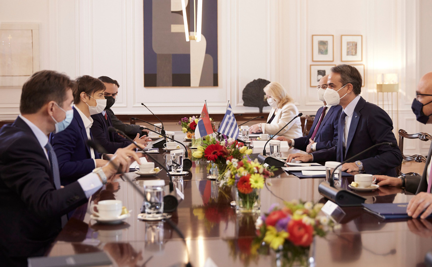 Με την πρωθυπουργό της Σερβίας Aνα Μπρνάμπιτς συναντήθηκε ο Κυριάκος Μητσοτάκης στο Μέγαρο Μαξίμου με την ευκαιρία της συμμετοχής της πρωθυπουργού στο Forum των Δελφών.