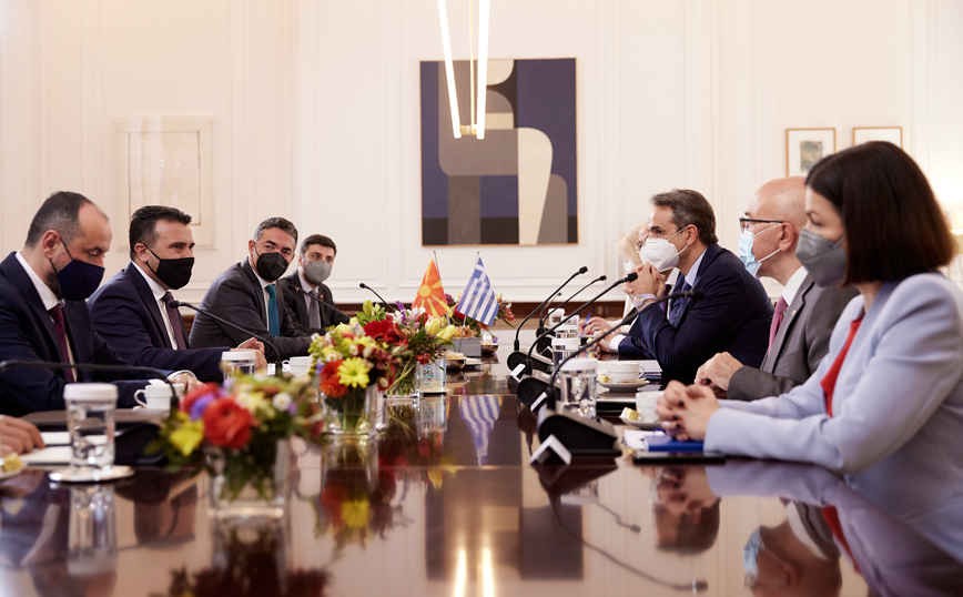 Κατά την έναρξη της συνάντησής τους, ο κ. Μητσοτάκης και ο κ. Zaev είχαν τον παρακάτω διάλογο: