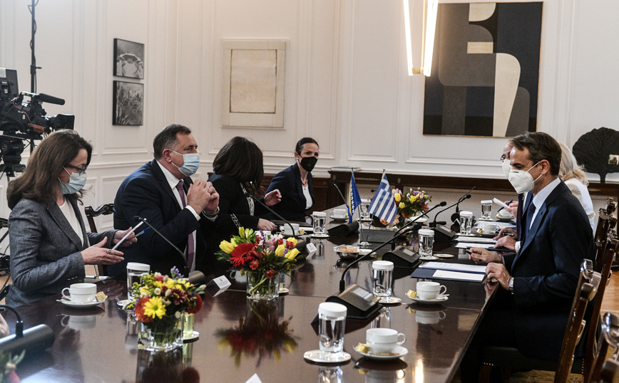 Με τον προεδρεύοντα του Συλλογικού Προεδρείου της Βοσνίας – Ερζεγοβίνης, Μίλοραντ Ντόντικ, συναντήθηκε σήμερα (13/05) ο πρωθυπουργός, Κυριάκος Μητσοτάκης. Βασικό αντικείμενο της συζήτησής τους ήταν οι διμερείς σχέσεις και οι προοπτικές περαιτέρω ενίσχυσης τους.