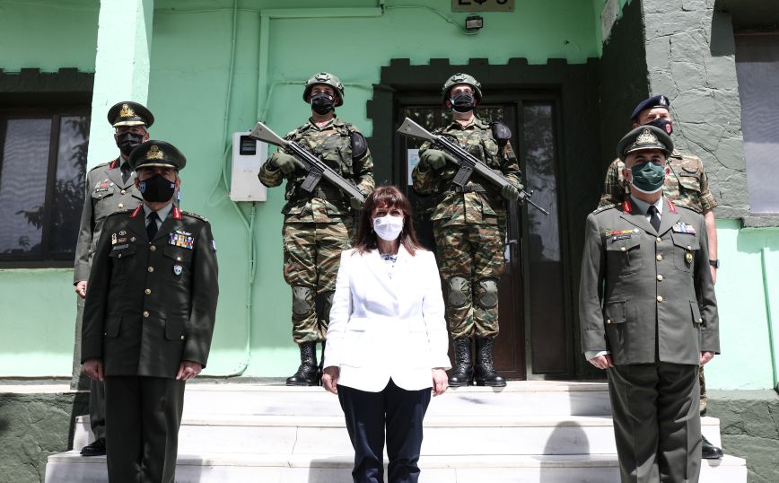 Επίσης, η κ. Σακελλαροπούλου επισκέφθηκε στρατιωτικό Φυλάκιο στην περιοχή Νέας Βύσσας όπου συνομίλησε με τους αξιωματικούς και τους στρατευμένους και μέλη της Frontex και στη συνέχεια μετέβη στο σημείο του Φράχτη.