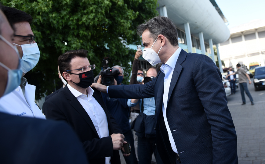 «Να στέλνουμε το μήνυμα και στους υγειονομικούς ότι όλοι πρέπει να εμβολιαστούν, εσείς πρέπει να το λέτε πρώτοι και δυνατά», σημείωσε ο Κυριάκος Μητσοτάκης. «Πάντα, πρέπει, βέβαια», του απάντησε εκείνη.