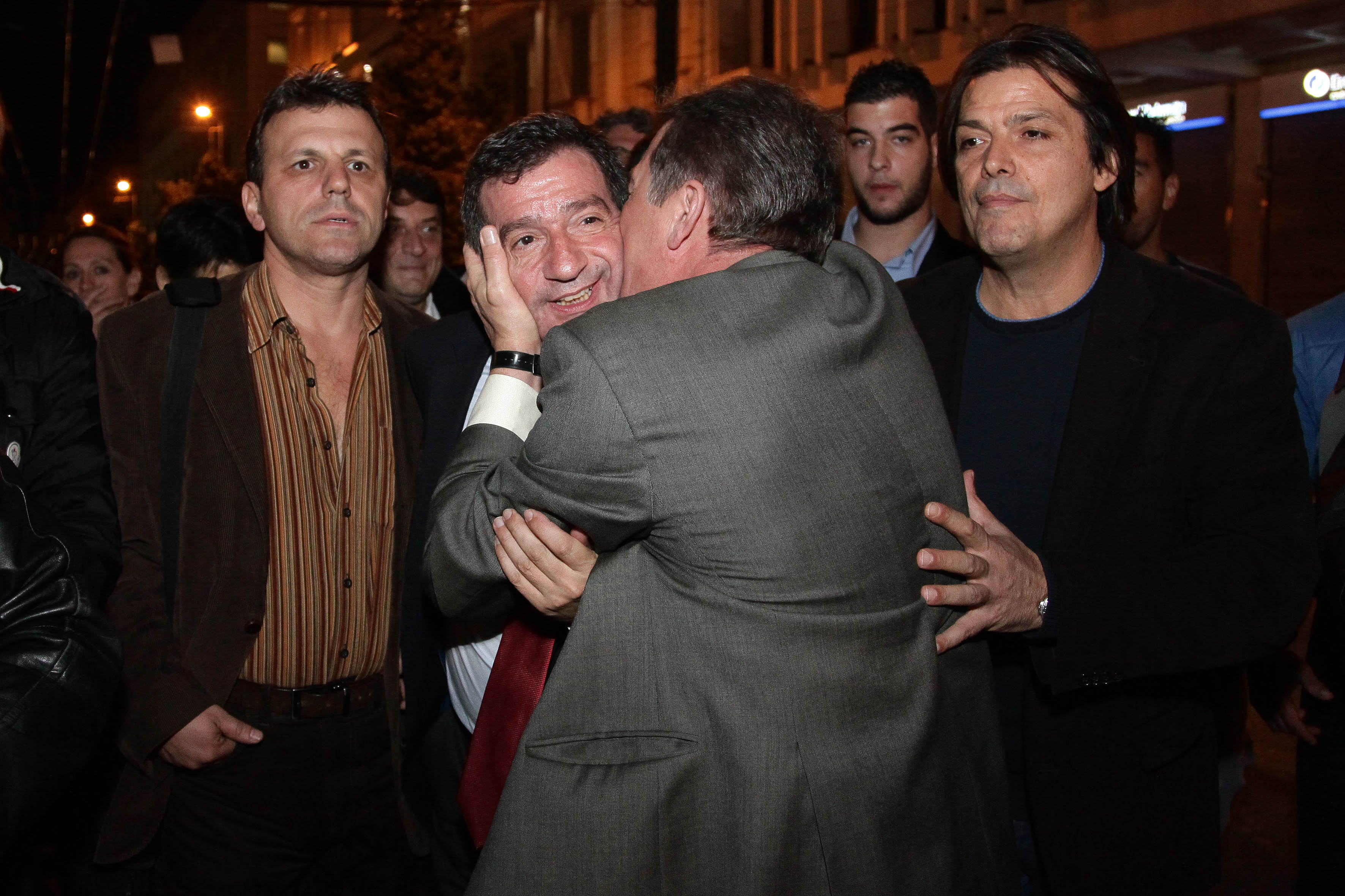 Γλέντια και χαρές στο εκλογικό κέντρο του νέου δημάρχου Αθηναίων. Ο Γιώργος Καμίνης έπεσε στις αγκαλιές των ψηφοφόρων του, που τον περίμεναν για τον συγχαρούν, και δέχτηκε με χαρά τις θερμές εκδηλώσεις τους.