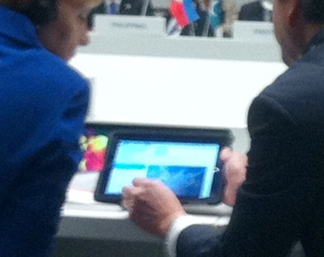 Ο Έλληνας πρωθυπουργός Αντώνης Σαμαράς άνοιξε το tablet του για να ενημερωθεί για τις εξελίξεις και βρέθηκε μπροστά στη φωτογραφία με το εντυπωσιακό ψηφιδωτό που αναπαριστά την αρπαγή της Περσεφόνης από τον Πλούτωνα, παρουσία του ψυχοπομπού Ερμή.