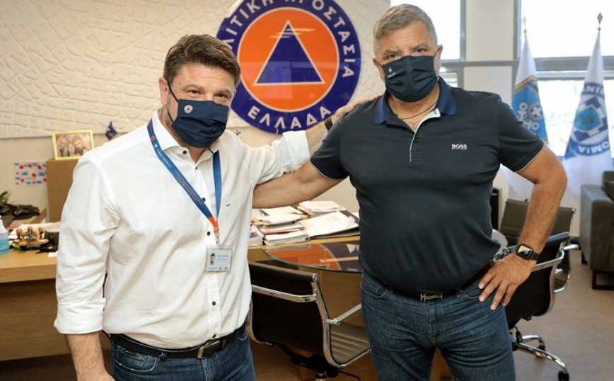 Στη συνάντηση έλαβαν επίσης μέρος ο γενικός γραμματέας Πολιτικής Προστασίας, Βασίλης Παπαγεωργίου, και ο αντιπεριφερειάρχης Πολιτικής Προστασίας και Περιβάλλοντος, Βασίλης Κόκκαλης.
