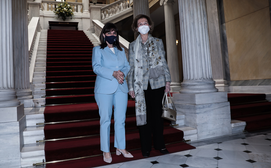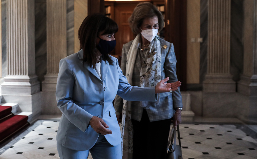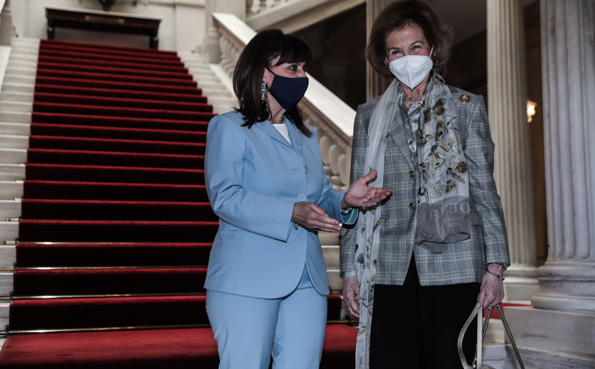 Με τη βασίλισσα Σοφία της Ισπανίας, η οποία πραγματοποιεί ιδιωτική επίσκεψη στην Ελλάδα συναντήθηκε την Παρασκευή (4/6) η Πρόεδρος της Δημοκρατίας Κατερίνα Σακελλαροπούλου.