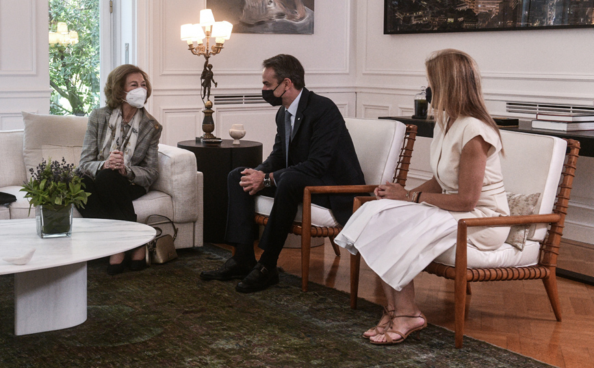 Με τη Βασίλισσα Σοφία της Ισπανίας, η οποία συνοδεύεται από την αδερφή της, Ειρήνη συναντάται ο πρωθυπουργός Κυριάκος Μητσοτάκης στο Μέγαρο Μαξίμου.