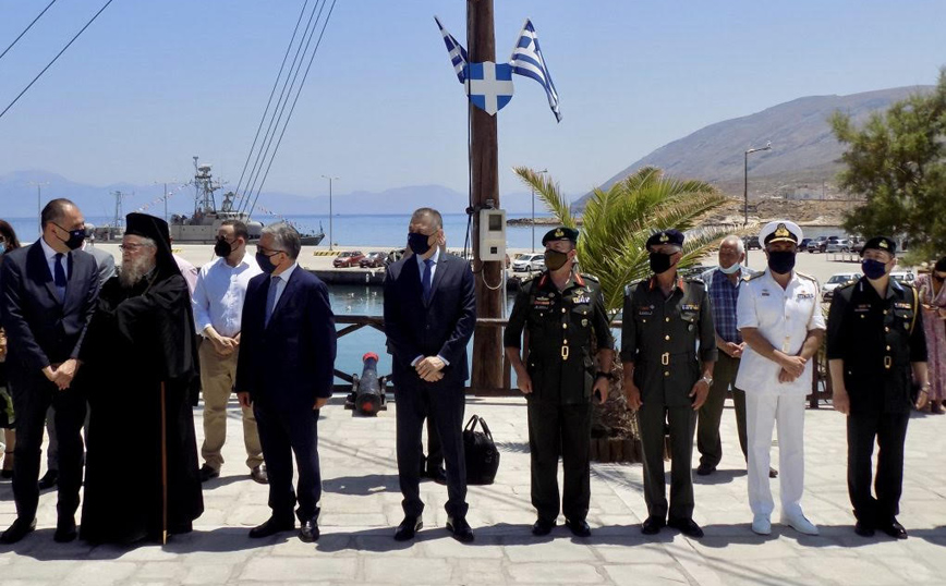 Στις εορταστικές εκδηλώσεις για την 197η Επέτειο του Ολοκαυτώματος της Ηρωικής Νήσου Κάσου παρέστη ο υπουργός Επικρατείας κ. Γεώργιος Γεραπετρίτης, εκπροσωπώντας τον πρόεδρο της κυβέρνησης, καθώς επίσης και ο υφυπουργός Εθνικής Άμυνας Αλκιβιάδης Στεφανής.