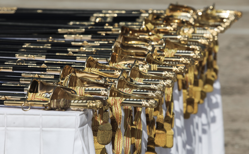 Τα ξίφη στους νέους και στις νέες σημαιοφόρους του Πολεμικού Ναυτικού παρέδωσε σήμερα η Πρόεδρος της Δημοκρατίας Κατερίνα Σακελλαροπούλου, στην τελετή που πραγματοποιήθηκε στις εγκαταστάσεις της Σχολής Ναυτικών Δοκίμων, στον Πειραιά.