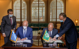 Μνημόνιο κατανόησης μεταξύ της Ελλάδας και του Αραβικού Συνδέσμου υπέγραψαν σήμερα (13/7) στο Κάιρο ο υπουργός Νίκος Δένδιας και ο Γενικός Γραμματέας του Αραβικού Συνδέσμου Άχμεντ Αμπούλ Γιτ ανοίγοντας ένα νέο μεγάλο κεφάλαιο συνεργασίας ανάμεσα στην Ελλάδα και όλα τα αραβικά κράτη.