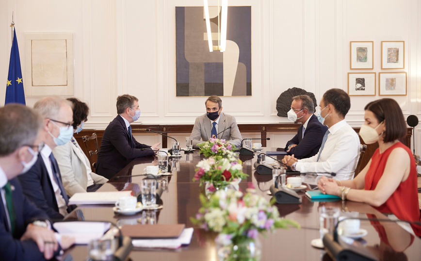 «Είναι χαρά μου να σας καλωσορίζω σε αυτή τη δύσκολη, απαιτητική, αλλά ταυτόχρονα -θα έλεγα- αισιόδοξη περίοδο για την οικονομία. Είμαι βέβαιος ότι συζητήσατε με τον Υπουργό (Οικονομικών Χρήστο Σταϊκούρα) την πρόοδο που έχει σημειώσει η ελληνική οικονομία τα τελευταία δύο χρόνια. Το σημείο που θα ήθελα να τονίσω είναι ότι, παρά την πανδημία και όλες τις δυσκολίες, δεν σταματήσαμε ποτέ να εφαρμόζουμε πραγματικές μεταρρυθμίσεις, κάτι το οποίο, πιστεύω, ότι μας τοποθετεί στο κατάλληλο σημείο ώστε να μπορέσουμε να επωφεληθούμε από την επικείμενη ανάπτυξη που θα έχει επίδραση και στην ελληνική οικονομία», ανέφερε αρχικά ο πρωθυπουργός.