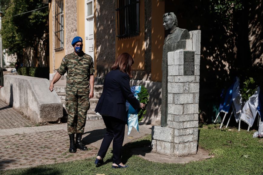Με την ευκαιρία της 47ης επετείου αποκατάστασης της Δημοκρατίας, η Πρόεδρος της Δημοκρατία, Κατερίνα Σακελλαροπούλου κατέθεσε το πρωί στεφάνι στην προτομή του Σπύρου Μουστακλή, στα πρώην κρατητήρια ΕΑΤ – ΕΣΑ στο Πάρκο Ελευθερίας, αποτίοντας φόρο τιμής σε όλους τους αντιστασιακούς.