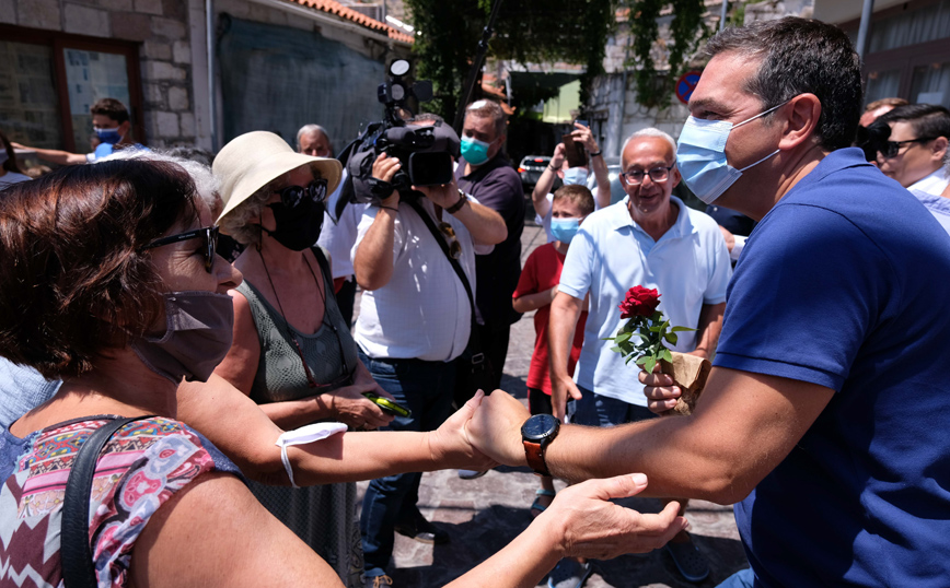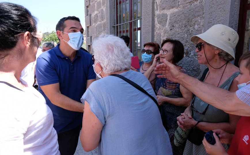 Κάτοικοι της ορεινής Στύψης, πολλοί από τους οποίους αγρότες και κτηνοτρόφοι, υποδέχτηκαν τον πρόεδρο του ΣΥΡΙΖΑ – Προοδευτική Συμμαχία, Αλέξη Τσίπρα κατά την επίσκεψή του στο χωριό σήμερα το μεσημέρι, στο πλαίσιο της περιοδείας του στη Λέσβο.