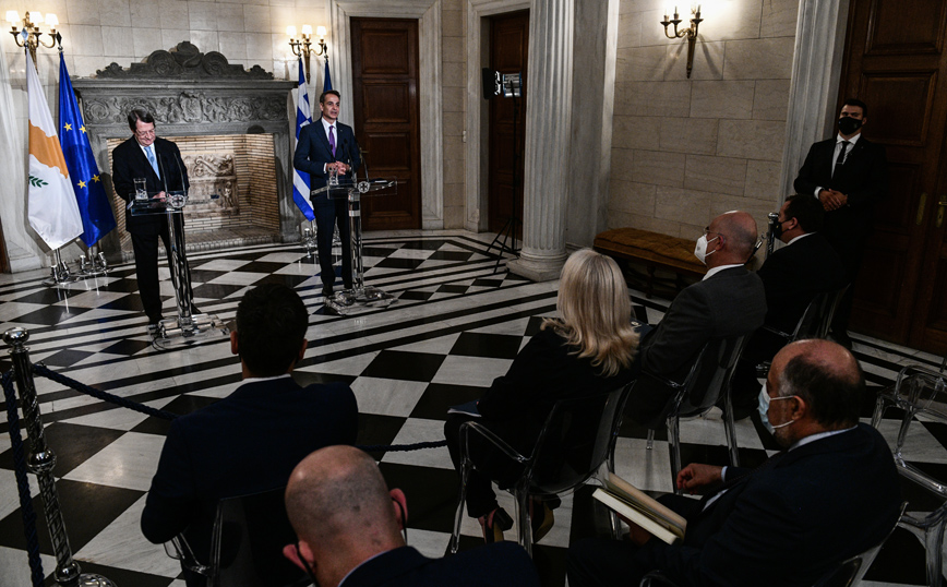 Συνεχίζοντας, ο πρωθυπουργός ανέφερε πως με τον Κύπριο Πρόεδρο συζήτησαν τα επόμενα βήματα και το συντονισμό και σημείωσε: «Πορευόμαστε πάντα μαζί και στηρίζουμε της προσπάθειες Κυπριακής Δημοκρατίας για την αναστροφή των τουρκικών μεθοδεύσεων στα Βαρώσια και την επανέναρξη των διαπραγματεύσεων για την επίλυση του κυπριακού στη βάση της διζωνικής δικοινοτικής ομοσπονδίας με μία κυριαρχία, μία διεθνή προσωπικότητα και μία ιθαγένεια όπως προβλέπεται στις αποφάσεις του Συμβουλίου Ασφαλείας των Ηνωμένων εθνών και πάντα σύμφωνη με τον Ευρωπαϊκό Κεκτημένο.