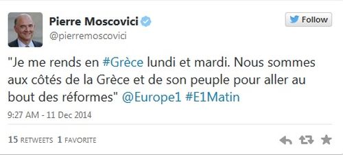«Θα επισκεφθώ την Ελλάδα τη Δευτέρα και την Τρίτη. Στεκόμαστε δίπλα στην Ελλάδα και τον λαό της για να συνεχίσουν τις μεταρρυθμίσεις» διεμήνυσε ο ευρωπαίος επίτροπος.