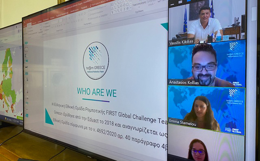 Ο υπουργός Υγείας Βασίλης Κικίλιας πραγματοποίησε σήμερα τηλεδιάσκεψη με την Ελληνική Εθνική Ομάδα Ρομποτικής, η οποία θα συμμετάσχει στην Ολυμπιάδα Ρομποτικής FIRST GLOBAL Challenge, που θα πραγματοποιηθεί στις 18 Σεπτεμβρίου με τη συμμετοχή εθνικών ομάδων από 190 χώρες του κόσμου.