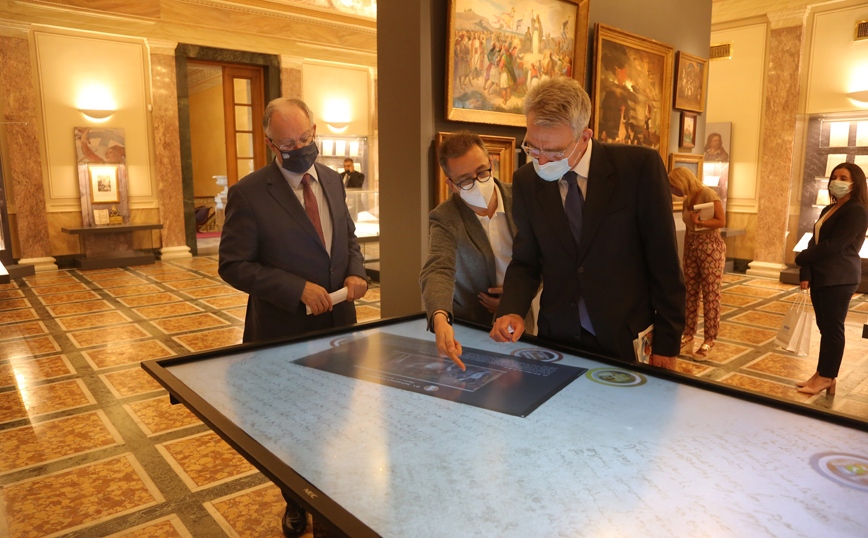 Μετά τη συνάντηση, ο Αμερικανός Πρέσβης, συνοδευόμενος από τον Πρόεδρο της Βουλής, ξεναγήθηκε στην Έκθεση «Αντικρίζοντας την Ελευθερία! Στη Βουλή των Ελλήνων, δύο αιώνες μετά», που αναπτύσσεται στο πλαίσιο του πανηγυρικού εορτασμού των διακοσίων ετών από την Ελληνική Επανάσταση, στους δύο πιο μνημειακούς χώρους του Μεγάρου της Βουλής, στο Περιστύλιο της Ολομέλειας και στην Αίθουσα «Ελευθέριος Βενιζέλος», πρώην Αίθουσα Τροπαίων και Υπασπιστών.