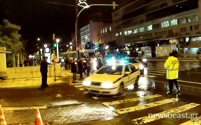 Οι αστυνομικές δυνάμεις απέκλεισαν την περιοχή, ενώ με αμάξια της αστυνομίας μπήκαν στο Κοινοβούλιο από το γκαράζ.