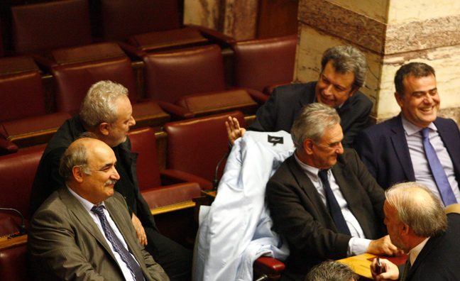 Με μεγάλη προσοχή άκουγε ο Σπύρος Λυκούδης από τους ανεξάρτητους βουλευτές αυτά που του έλεγε ο βουλευτής της ΝΔ Λευτέρης Αυγενάκης, ενώ ενδιαφέρον έδειχνε ο βουλευτής της ΔΗΜΑΡ Θωμάς Ψύρας σε αυτά που άκουγε από τον βουλευτή του ΠΑΣΟΚ Φίλιππο Σαχινίδη.
