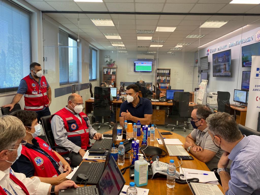 «Είμαστε σήμερα εδώ, στο Συντονιστικό Κέντρο Επιχειρήσεων Υγείας με τον Αναπληρωτή Υπουργό, τον Γενικό Γραμματέα και την ηγεσία του ΕΚΑΒ, για να επικαιροποιήσουμε όλα τα πρωτόκολλά μας με βάση αυτή την τεράστια κρίση που αντιμετωπίζει η χώρα και να διαβεβαιώσουμε ότι οι διασώστες του ΕΚΑΒ, τα ασθενοφόρα μας, οι Κινητές Μονάδες και όλο το Εθνικό Σύστημα Υγείας βρίσκεται δίπλα στους πυροσβέστες μας, δίπλα στους εθελοντές μας, δίπλα στους αστυνομικούς μας και φυσικά δίπλα στους πολίτες στη μάχη την οποία δίνουν.