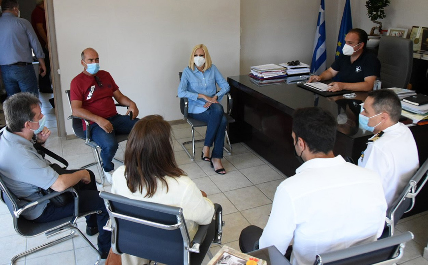 Στο πλαίσιο της επίσκεψής της η κ. Γεννηματά συναντήθηκε με τον δήμαρχο Ιστιαίας-Αιδηψού, τις λιμενικές αρχές και εκπροσώπους φορέων των καμένων περιοχών.