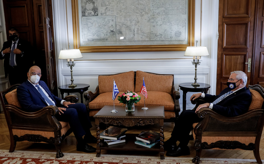 Ο κ. Δένδιας χαρακτήρισε τον κ. Μενέντεζ «έναν πραγματικό φίλο της Ελλάδας» που έχει «συμβάλλει με τον πιο καθοριστικό τρόπο στην ενίσχυση της στρατηγικής σχέσης των ΗΠΑ και της Ελλάδας».