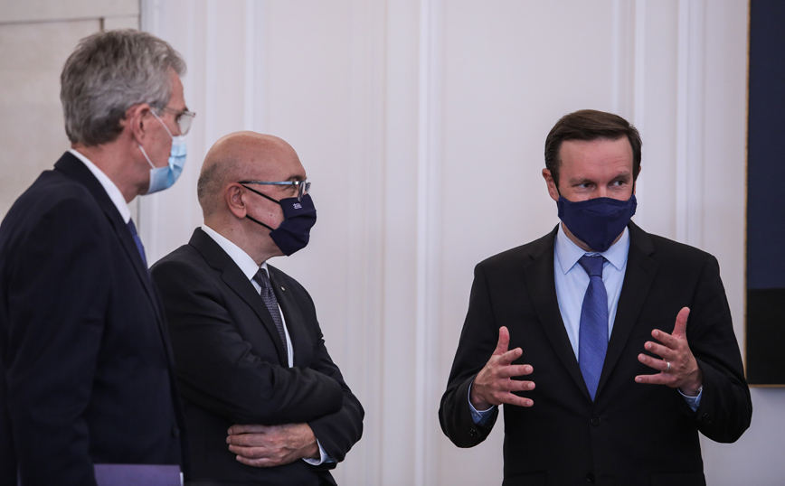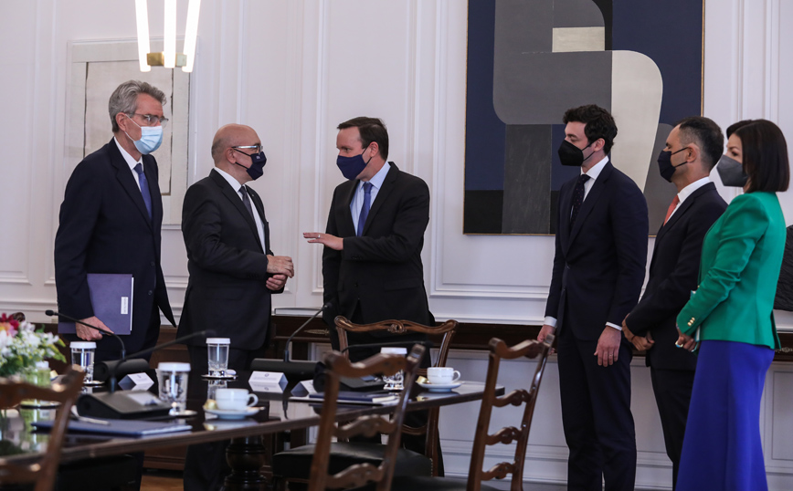 Περιφερειακά και διεθνή ζητήματα κοινού ενδιαφέροντος, με έμφαση στις εξελίξεις στην ευρύτερη περιοχή, την Ανατολική Μεσόγειο, τη Μέση Ανατολή, αλλά και την κατάσταση το Αφγανιστάν τέθηκαν επί τάπητος κατά τη σημερινή συνάντηση του πρωθυπουργού, Κυριάκου Μητσοτάκη με τους Αμερικάνους Γερουσιαστές, Κρίς Μέρφι (Chris Murphy) και Τζον Όσοφ (Jon Ossoff).