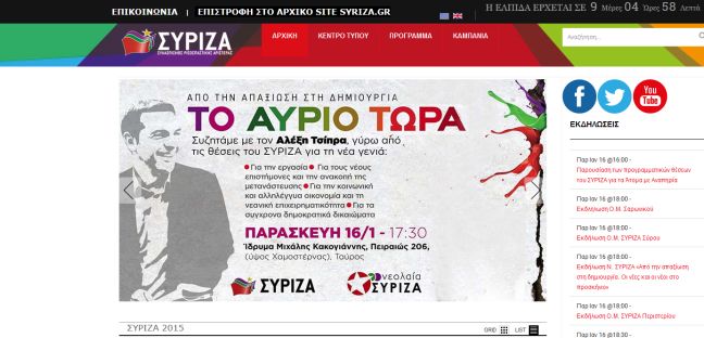 Ένα ρολόι που μετρά αντίστροφα τον χρόνο για την εκλογική αναμέτρηση της 25ης Ιανουαρίου έχει αναρτηθεί στη σελίδα του ΣΥΡΙΖΑ.