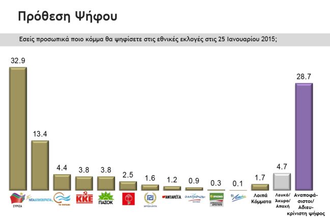 Ο ΣΥΡΙΖΑ προηγείται με 19,5 μονάδες στους τέσσερις νομούς της Κρήτης, συγκεντρώνοντας ποσοστό 32,9% στην πρόθεση ψήφου, ενώ η ΝΔ ακολουθεί με 13,4%.