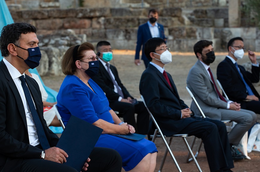 Κατά την τελετή βιντεοσκοπημένες ομιλίες απηύθυναν επίσης ο υπουργός Πολιτισμού και Τουρισμού της Λαϊκής Δημοκρατίας της Κίνας, Hu Heping, ο γενικός διευθυντής της Κρατικής Διοίκησης Πολιτιστικής Κληρονομιάς της Κίνας, Li Qun, καθώς και ο Δρ Wu Weishan, στον οποίο απονεμήθηκε, δια εκπροσώπου του, τιμητική πλακέτα από την υπουργό Πολιτισμού και Αθλητισμού. Η τελετή ολοκληρώθηκε με συναυλία του φωνητικού συνόλου chórεs από την Εθνική Λυρική Σκηνή.
